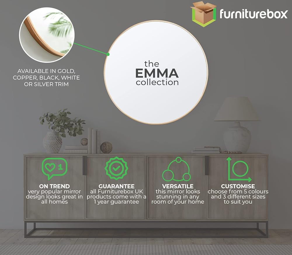The Emma mirror is a stylish, on trend design with its round shape and minimal metal frame, it will have a high impact on your walls. Wow your guests with the ultimate circle mirror