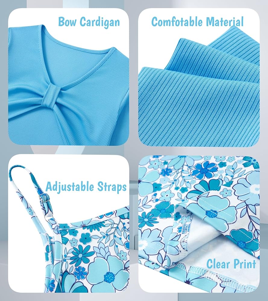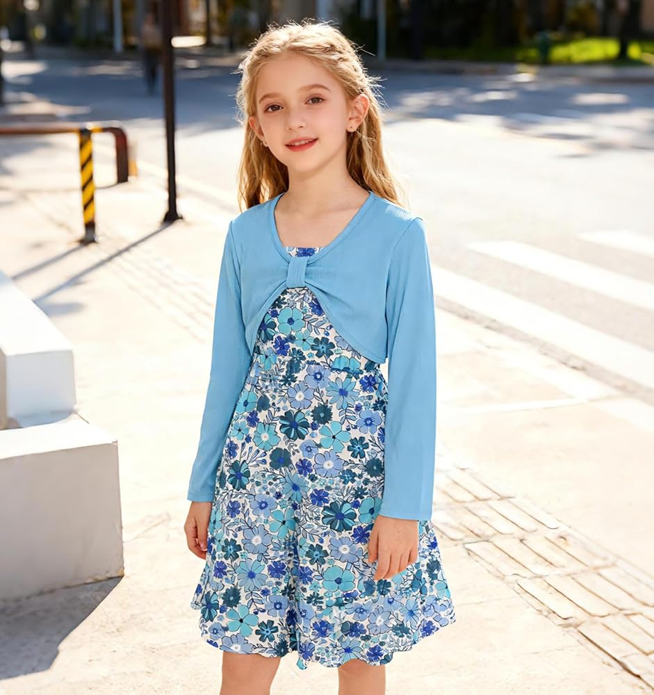Design:Cute dresses for girls is very pretty,solid color blouse top with bow design; Bright patterns cami dress with adjustable shoulder straps,it's easy for kids to wear and take off.