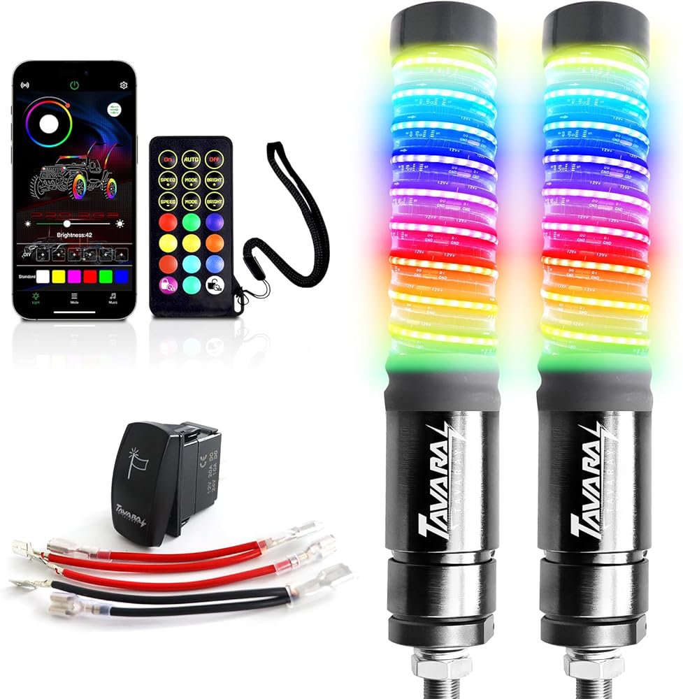 Heavy-duty LED Whip: Tavaray fat whip lights feature advanced COB LED chips with 828 RGB LEDs in a tightly coiled spiral for full 360° illumination. Up to 3x brighter than standard LED whips, easily visible in sunlight, dust, and rough off-road terrain.