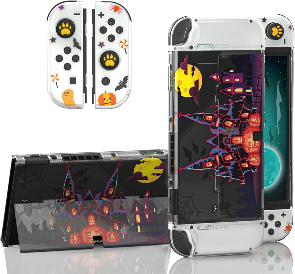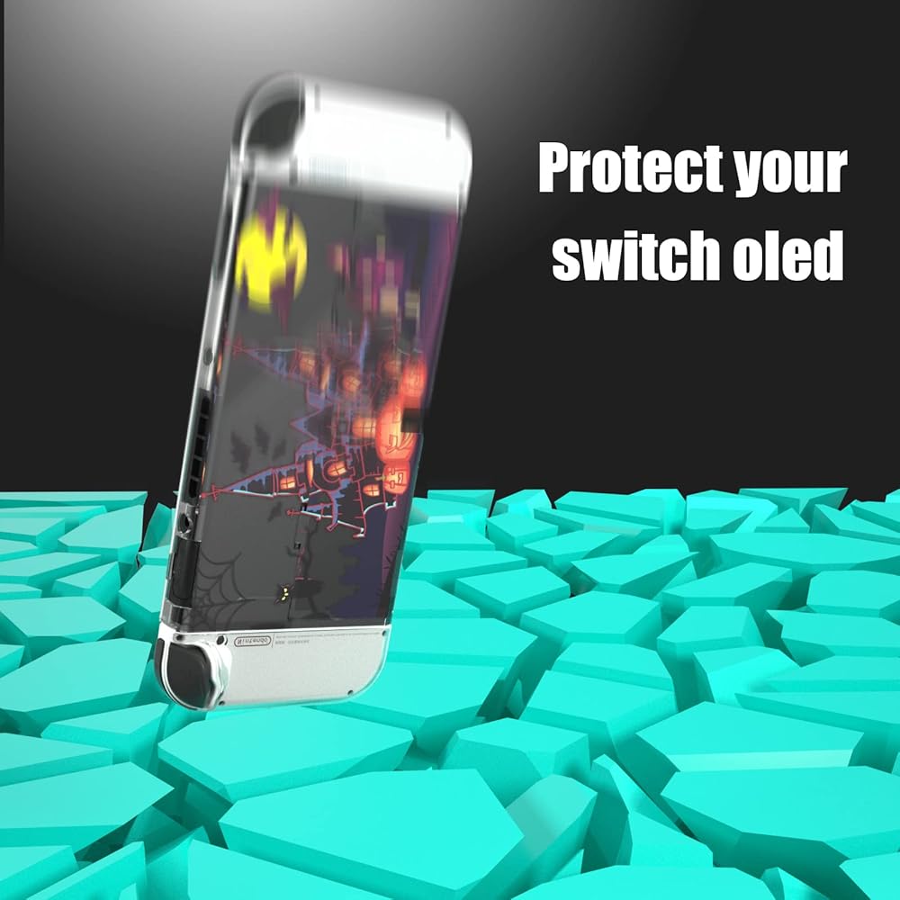 Crystal clear case compatible with Nintendo Switch OLED.Protective Case Cover for Nintendo Switch OLED with Tempered Glass Screen Protector and Thumb Grip Caps