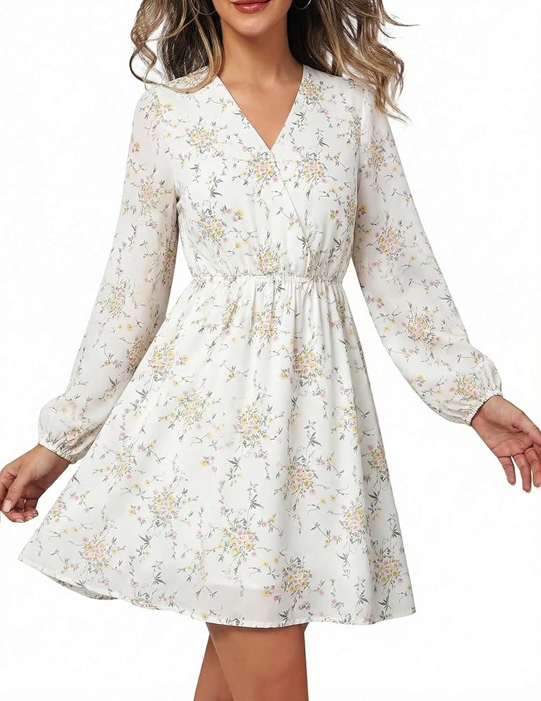Occasions: The floral flowy mini dress are suitable for multi occasions. It's a nice dresses for casual daily wear, cocktail, beach, dating, party, date nights, evening parties, vacations, holidays, clubs, weddings, dinner, New Year's Eve etc and special occasions, Chiffon long sleeved mini dress are suitable for wearing in summer, fall, winter, and spring