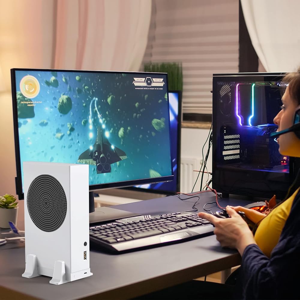 【Dual Purpose Cooling Stand with Fan】 Compared with the cooling stand that can only be installed on the bottom of Xbox Series S console, this upgraded cooling stand with fan has two fan cooling system. This Xbox Series S cooling stand with fan can be installed on the top or bottom of the console. This high speed cooling stand with fan can more effectively prevent your console from shutting down due to overheating and prolong its lifespan to provide you the best gaming experience.