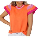 • Match: Ruffle cap sleeve crop tops pairs perfectly with shorts, skirts, denims, high-waisted pants, leggings , or layering as a undershirt, the cropped fit and unique color block will add a touch of elegance to any outfit