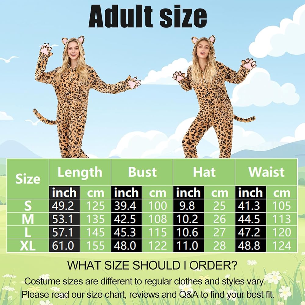 Cheetah Onesie Cat Costume for Women Halloween Fleece Leopard Costumes Animals Cosplay Dress Up