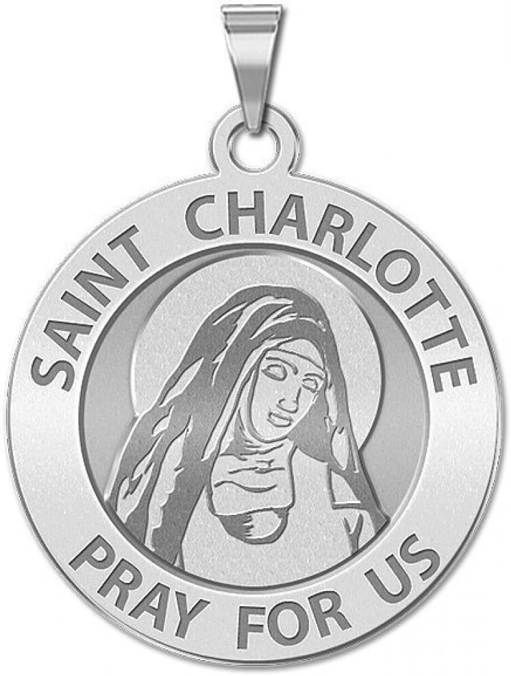 PicturesOnGold.com Saint Charlotte Round Religious Medal - - 1 Inch Size of a Quarter -Sterling Silver