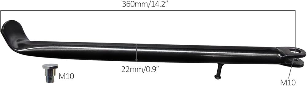Universal Kickstand Replacement – Measures 360mm (14.17") in length and 22mm (0.87") in width, with a 10mm (0.39") bolt hole, suitable for dirt pit bikes and off-road motorcycles