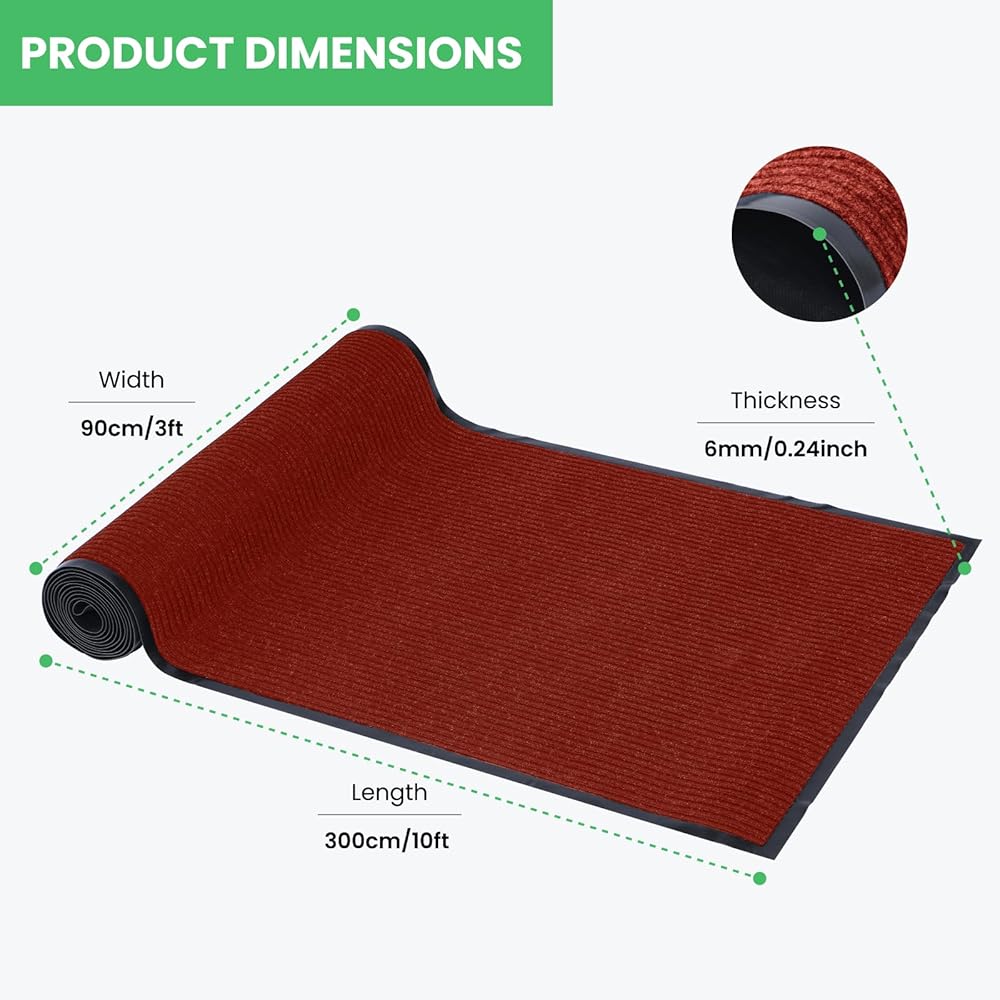VERSATILE USE: Designed to measure 10 feet in length and 3 feet in width, this indoor outdoor rug's 6mm design thickness is not only very sturdy and durable but also provides great comfort. It is widely used in malls, offices, kitchens, hallways, patios and other scenarios.