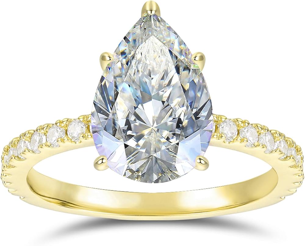 - The main gemstone is a 8mmx12mm 3.0 ct pear cut D color VVS moissanite,surrounded by a halo of melee stones