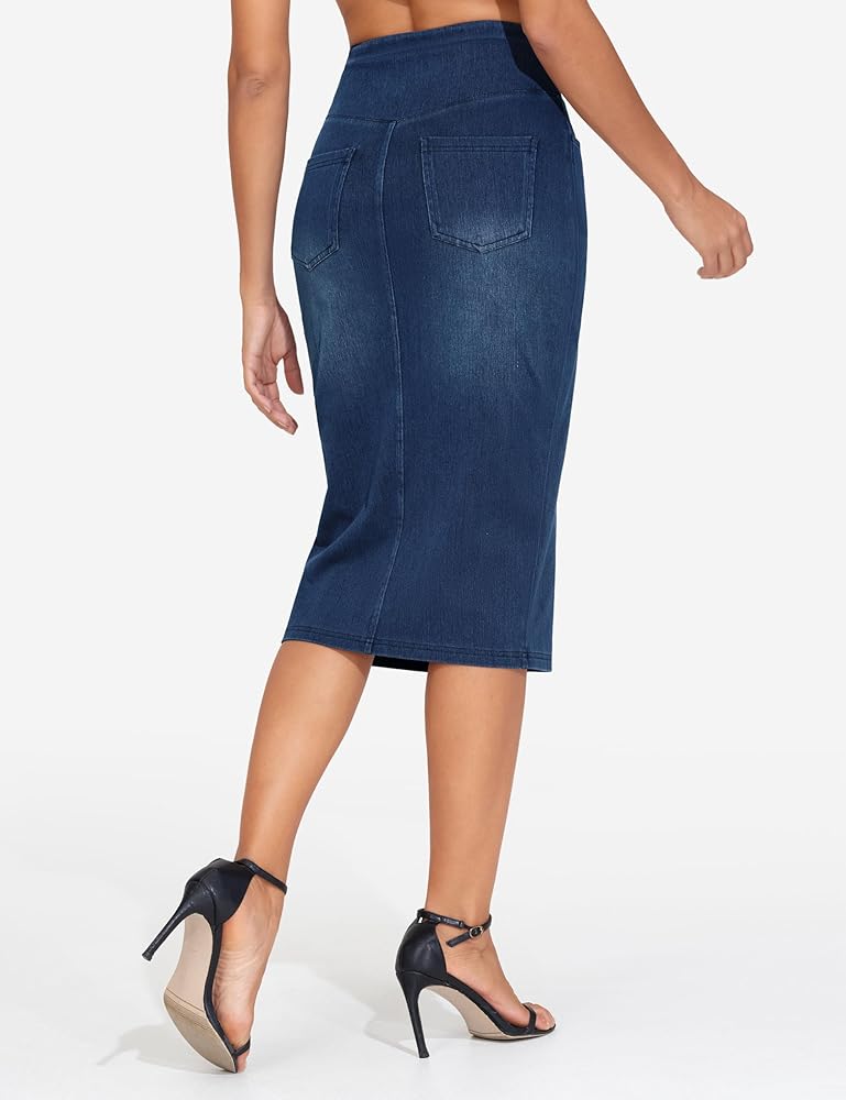 Front Split Design: The front split A-line cut is unique to our Stretchy Denim Skirts. It not only adds a sense of fashion, but also makes it easy to walk, adding to your temperament and charm.