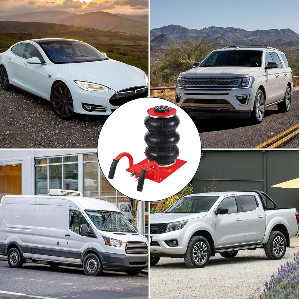 【🚙6600lbs Lift in 8 Seconds – No Cranking, No Cursing】 This air-powered monster rockets SUVs and trucks from 5.5" to 15.7" with any compressor (100-145 PSI). Perfect for icy roadside tire swaps, muddy trail repairs, or brake jobs—just hook up, pump, and watch your rig levitate.