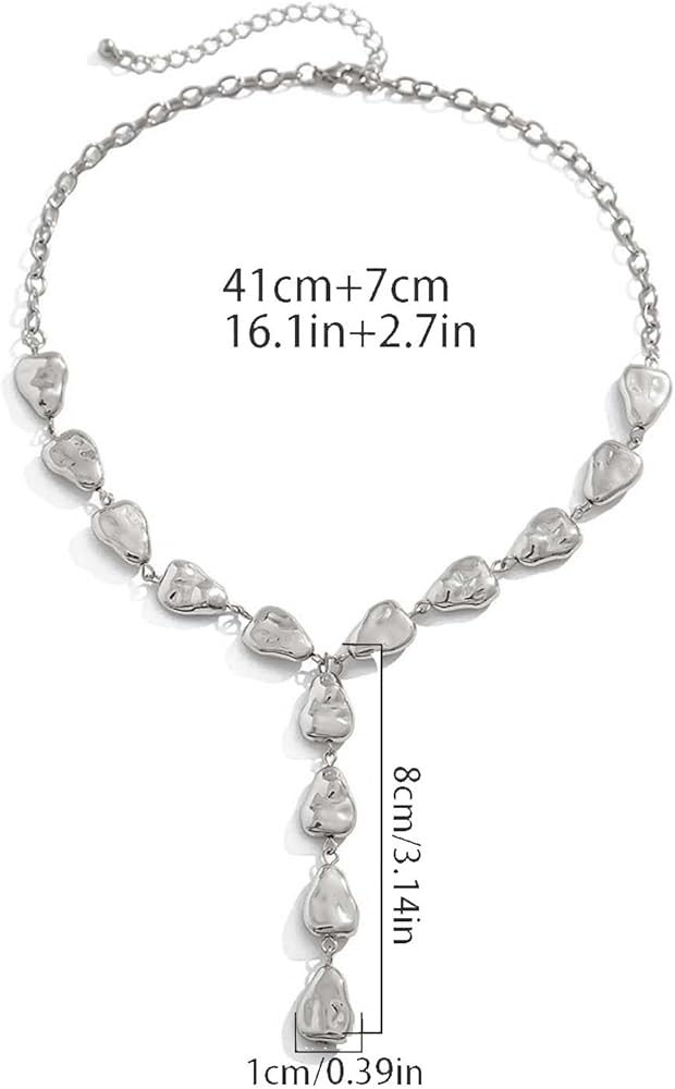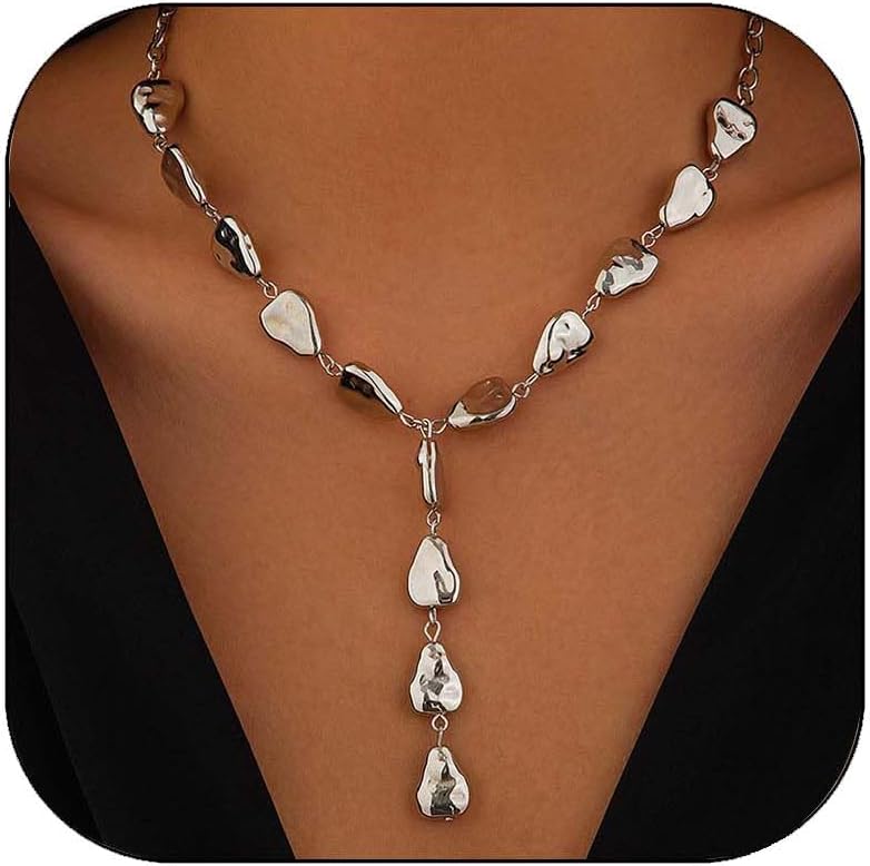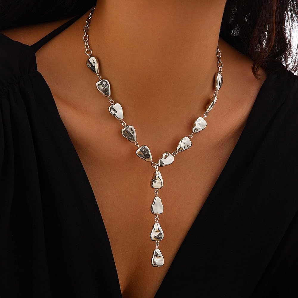 Gold Baroque Teardrop Necklaces: This necklace has a bold and artistic design. It features irregularly shaped gold elements strung together, forming a unique and eye - catching pattern. The Y - shaped drop design adds a touch of elegance and sophistication.