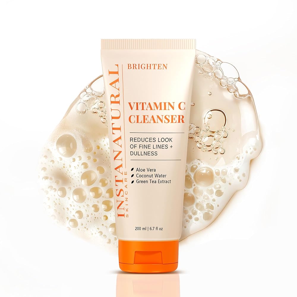 InstaNatural Vitamin C Cleanser | All Natural Face Wash, Brightens Skin, Good for Uneven Texture, USA Made with Coconut Water and Aloe Vera, 6.7 FL Oz
