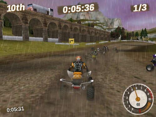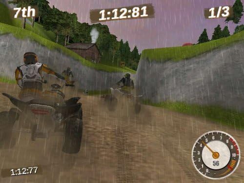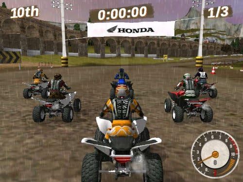 In ATV Fever, take on the most challenging tracks in the world, and compete against the best in events, on dirt tracks, off road, and through treacherous mountains. Choose from 9 Honda ATVs to suit your racing style and the terrain. Bump riders if they get too close, use your turbo boost and jump to get clear of the "pack", and interact with movable objects in each exotic location!