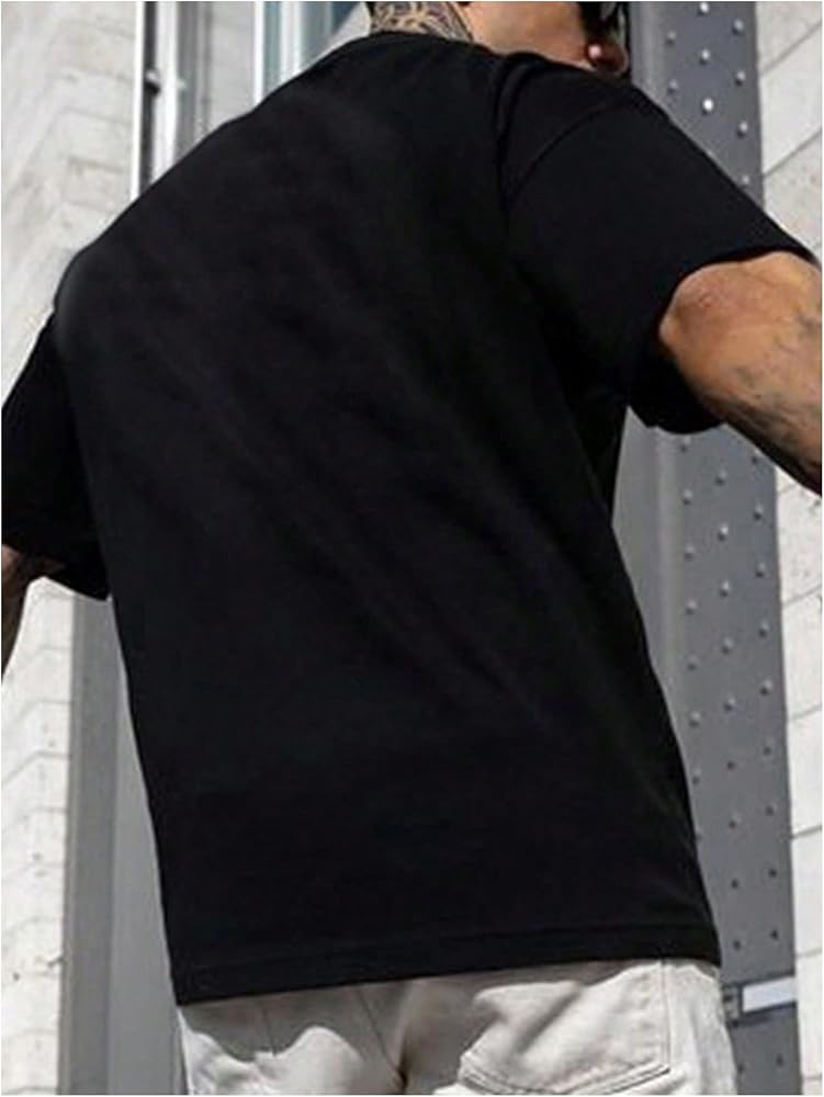 GORGLITTER Men's Crewneck T Shirt Letter Graphic Short Sleeve Casual Drop Shoulder Oversized Tee