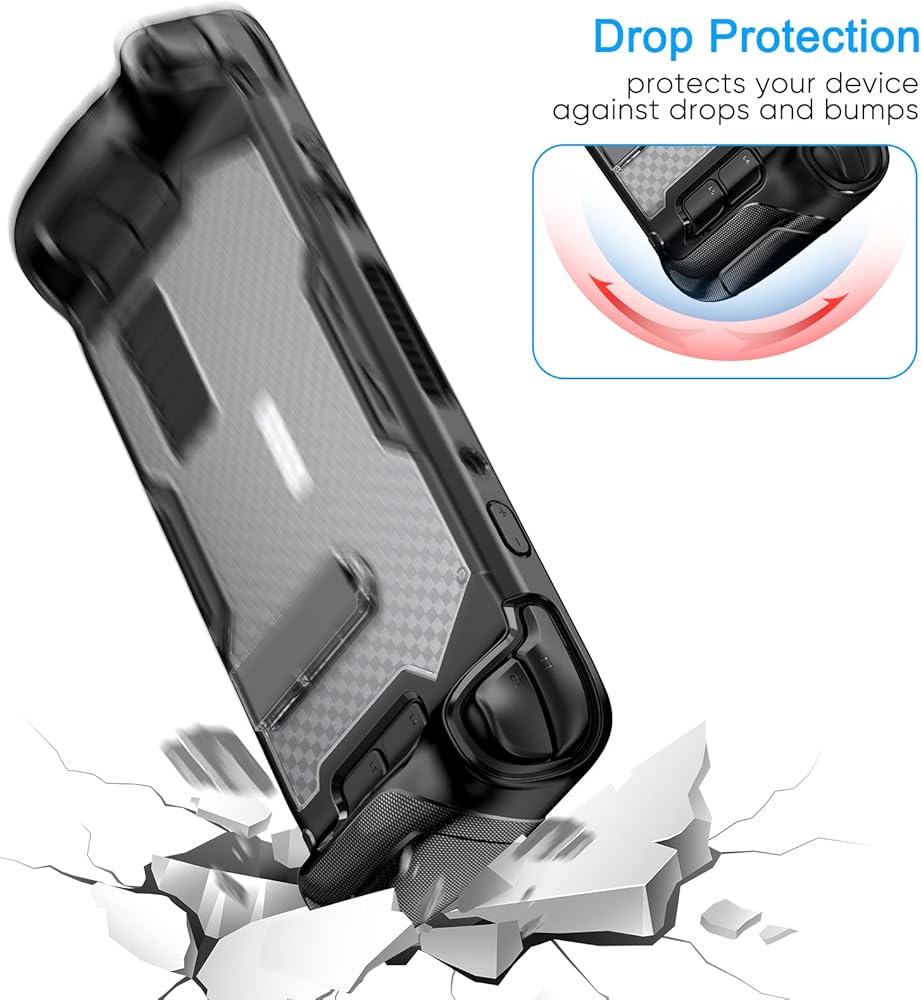【Comprehensive Protection】Made with shock-absorbent flexible TPU grips cover case + hard PC back case for Steam Deck can provide full protection. With tempered screen protector & thump grips protect your device from everyday drops, shocks, bumps, scratches, dust and fingerprints. Comes with cleaning kit, easy to install.