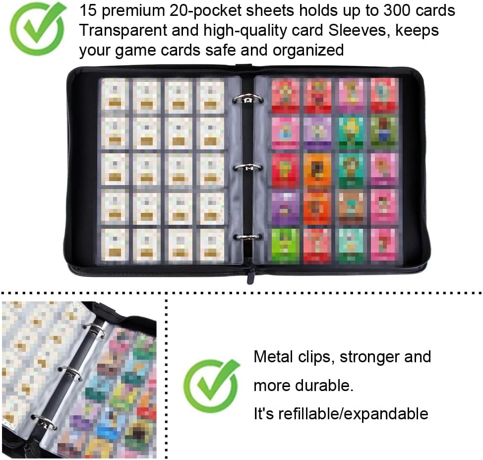 【Lightweight and easy to carry 】- Our card binder has durable zipper and sturdy fabric wrist loop,so you can take it with when they choose. it is easy for your loves to put their favorite nfc tags game cards in and carry around to enjoy the game.