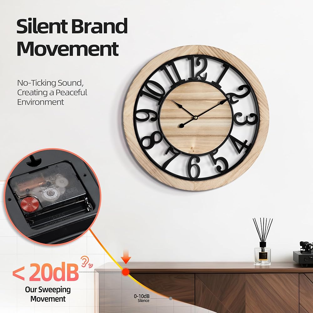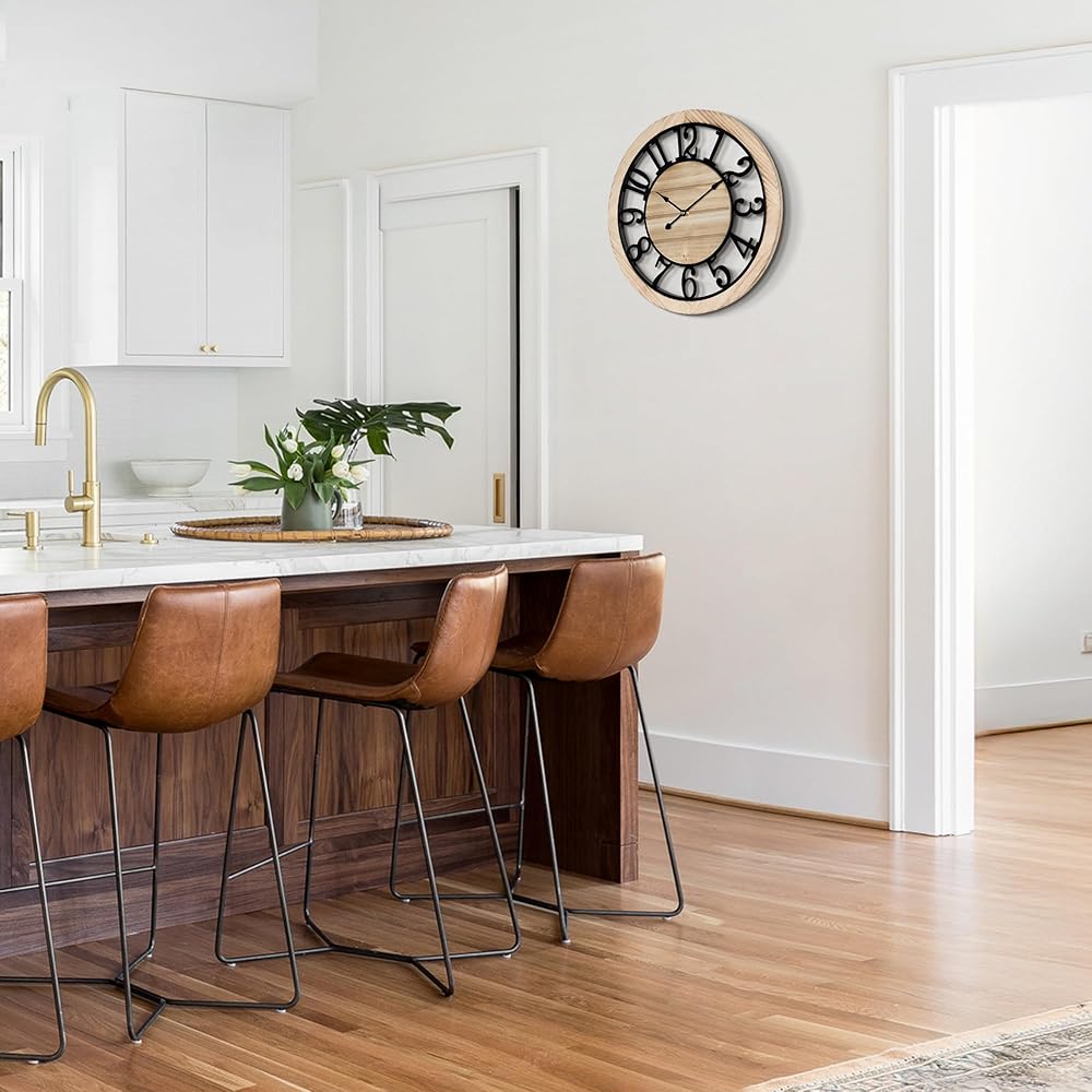 Versatile Style: Perfectly blending rustic charm with modern elegance, this clock complements farmhouse kitchens and urban living rooms alike—adding warm contrast to any decor.