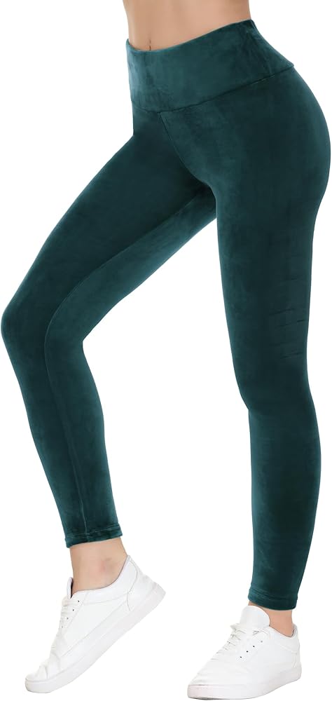 𝐇𝐢𝐠𝐡 𝐖𝐚𝐢𝐬𝐭𝐞𝐝 & 𝐓𝐮𝐦𝐦𝐲 𝐂𝐨𝐧𝐭𝐫𝐨𝐥: This velour leggging for women is reinforced with high-waisted and elastic wide waist band. No pressure and good tummy control effect