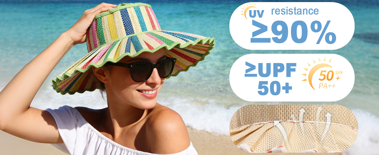 【Excellent UV protection】The full brim design provides excellent ultraviolet (UPF) protection, which can protect your face and neck from harmful UV rays. It is ideal for beach outings or daily wear. Block harmful rays while being more fashionable.