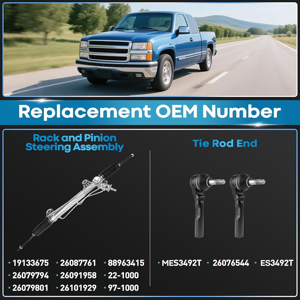 Reference Number — Power Steering Rack: 22-1036, 221036, 15254060, 15254062, 19133646, 19133648, 19153072, 19153073, 19153074, 19153075, 19178559, 19178561, 19207489, 19207490, 19207491, 19207492. Tie Rod End: ES800223, 12479168, 15254061