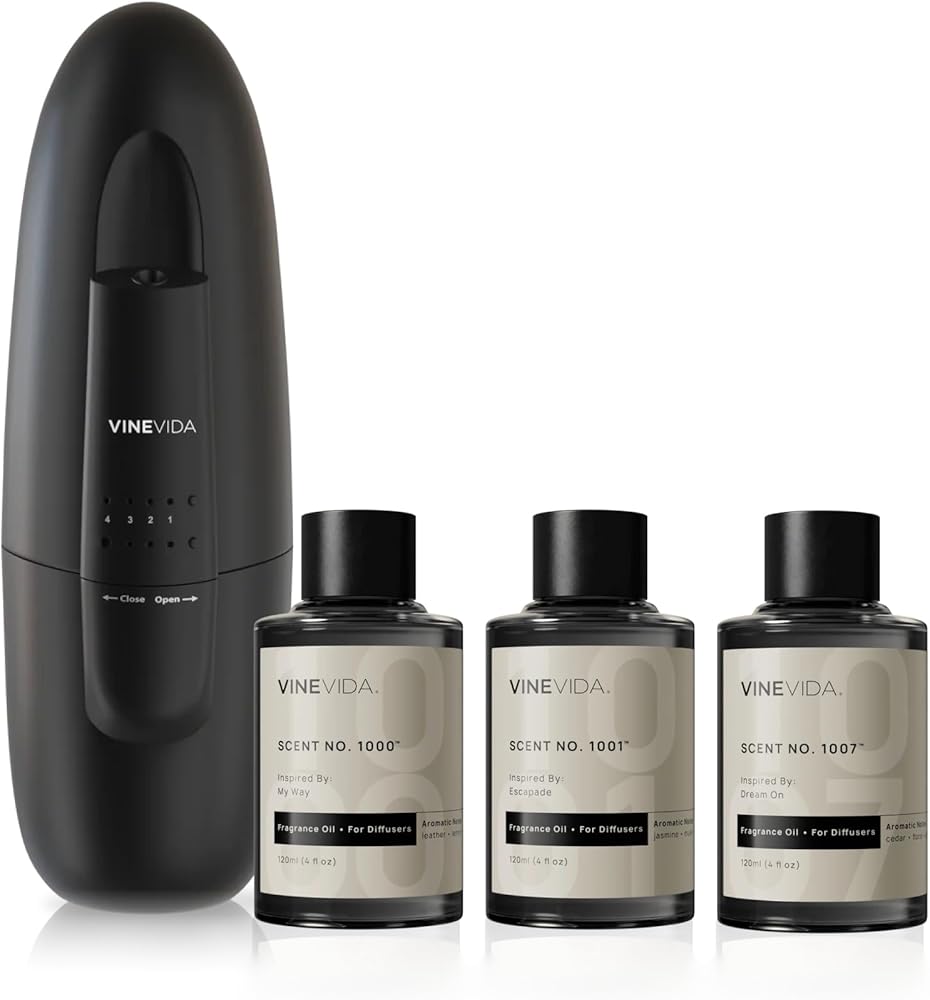 VINEVIDA Waterless Diffuser and 3 Top Selling Hotel Fragrance Oils - Essential Oil Diffuser for Home - Room Fragrance Air Diffuser [Black Aroma Diffuser]