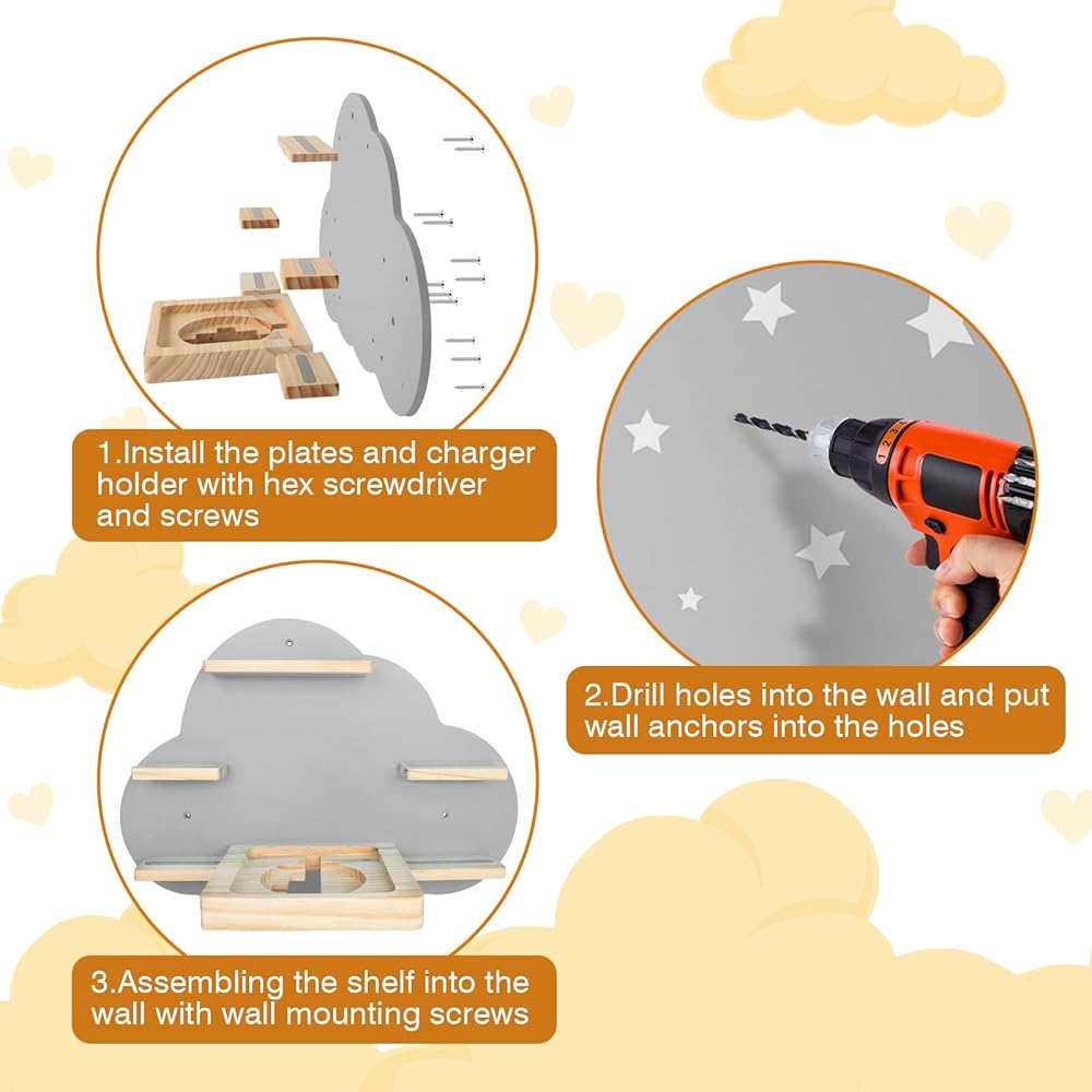Adorable Cloud Design: This wooden magnetic shelf features a charming cloud shape, perfect for adding a whimsical touch to any child's room; Its unique design not only organizes but also enhances the room's decor