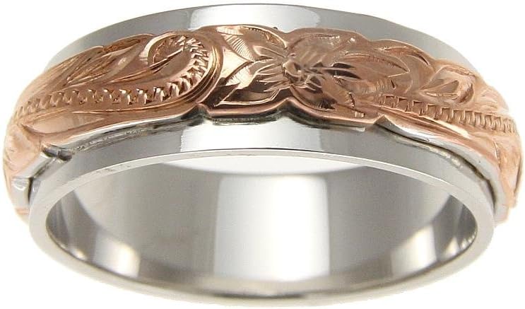 Sterling silver 925 2 tone pink rose gold plated Hawaiian princess scroll 4/6mm double band ring size 3-12