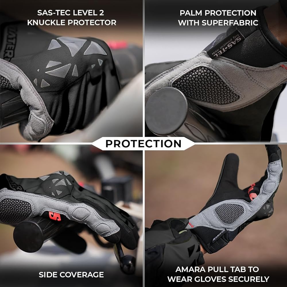 Enhanced Protection: Experience safety with SAS-TEC CE level 2 knuckle protectors and SuperFabric palm protection, perfect for shielding hands during intense trail rides.