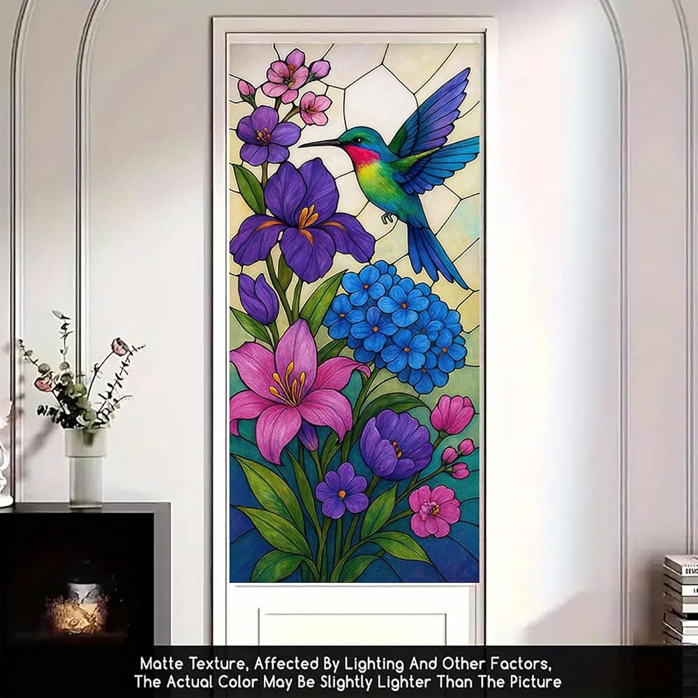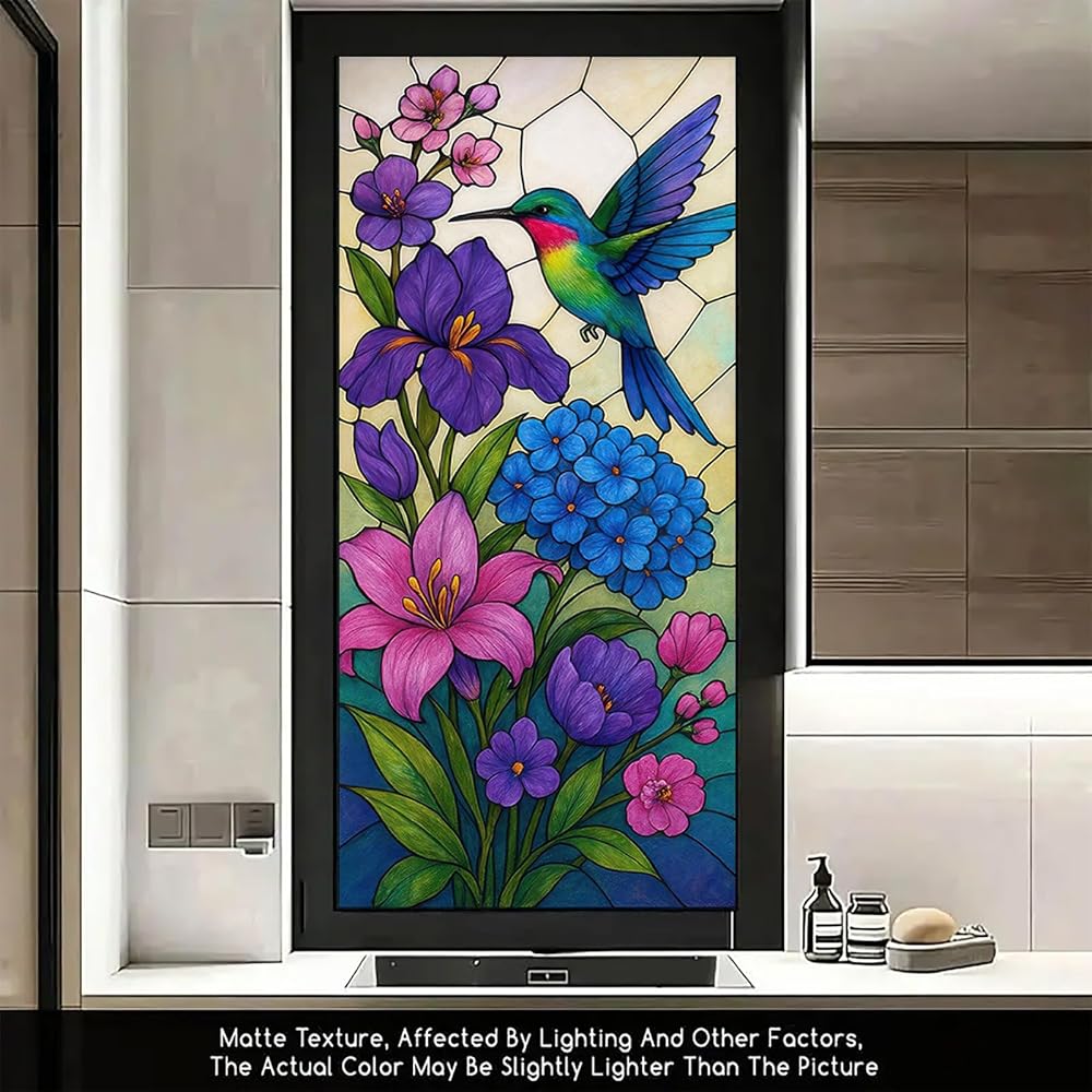 Soft Light and Privacy: The frosted stained glass effect gently diffuses sunlight into colorful hues while shielding indoor views ideal for bathroom doors porch windows or cozy reading nooks.