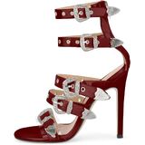Women's Ankle Buckle Stilettos High Heels Back Zipper Round Toe Sandals