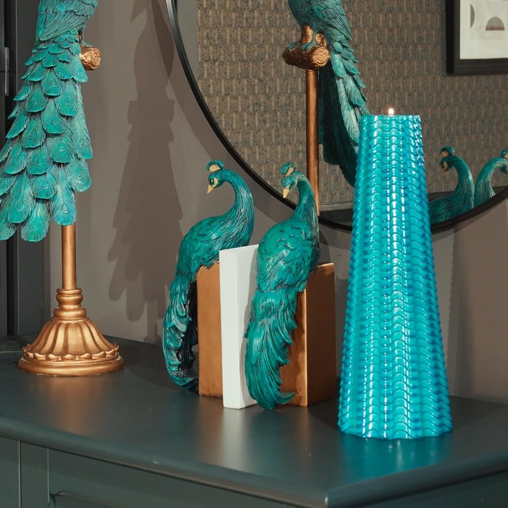 Heavy Duty Bookends Home Decor - Set of 2 Resin Peacock Non-Skid Decorative Bookends Bird Bookends Modern Peacock Statue Decor for Bookshelves Office Desk Living Room 6 * 2.5 * 12 Inch Braxio