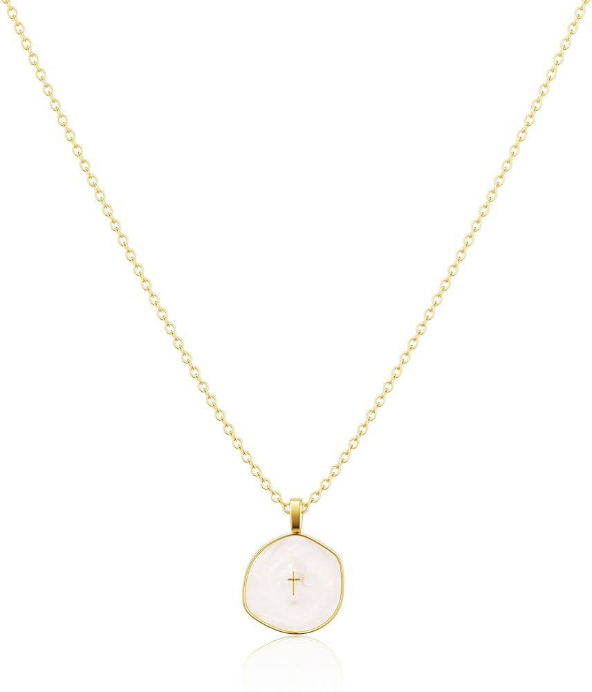 This cross necklace for women features an elegant minimalist style, with a cute cross on a circular pendant. The white drip-enamel technique creates unique textured patterns, while the asymmetrical edges give each piece a distinctive artistic flair - perfectly blending sacred symbolism with contemporary fashion.