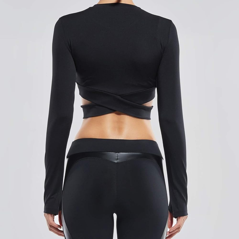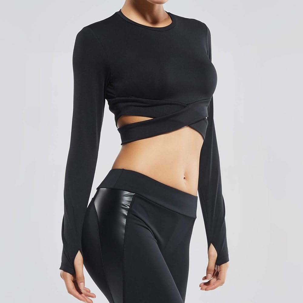 FITTOO Women's Crop Long Sleeves Workout Tops Font Criss-Crosss Sports Shirts Fitness Activewear