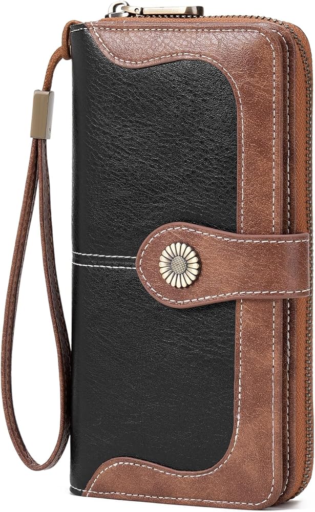 Soft Leather: wristlet wallets for women is made of premium vegan leather, good texture, softer, durable, and not easy to crack .Card holder wallet with brush anti-brass metal fittings, smooth zipper and sturdy stitching ensures to service a long time for you. Sunflower button and hollow design make this wallet simple and designer, never out of date