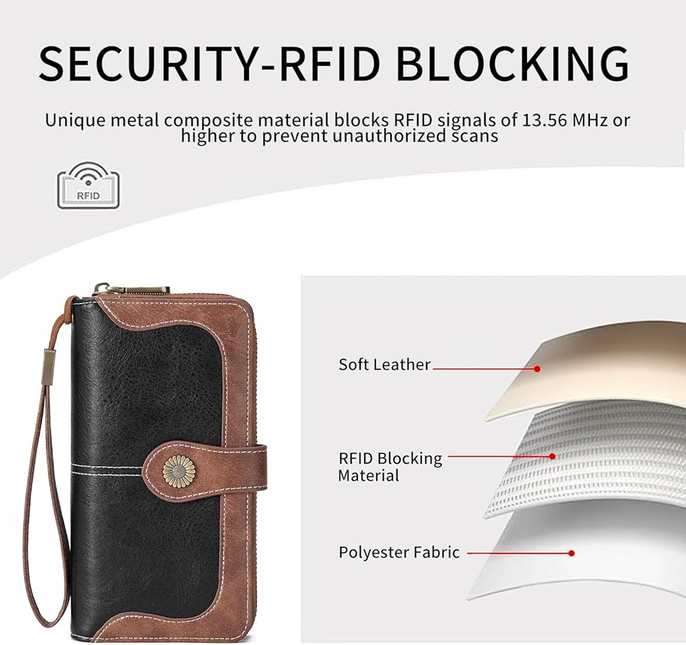 RFID Protection:Built-in RFID blocking technology safeguards credit cards and IDs from unauthorized scanning.Secure your personal information effortlessly