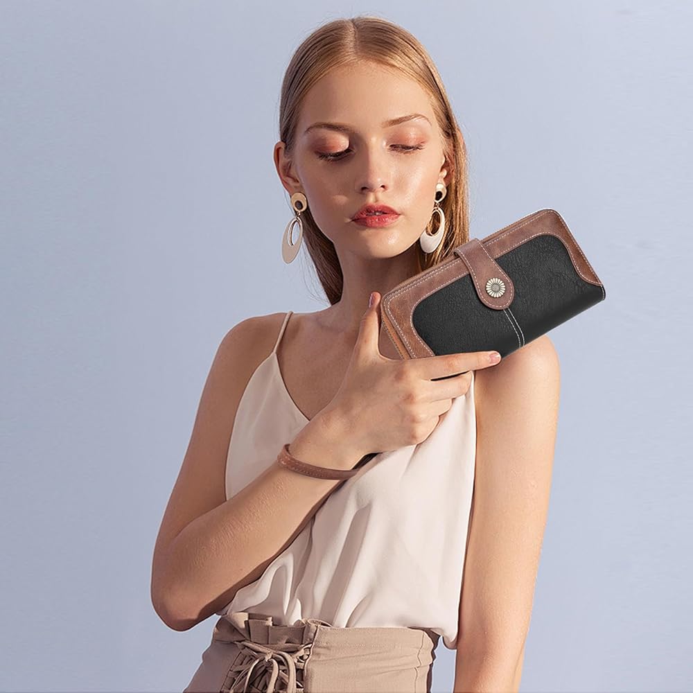 Large-Capacity wallet women:1 large zipper + 2 cash slot + 1 large accessory slot + 1 coin slot + 16 card slots + 1 transparent window (for ID and photos), an extremely powerful multi-functional wallet, women's card wallet,clear layout,bi-fold design,convenient for cash and credit card deposit and withdrawal