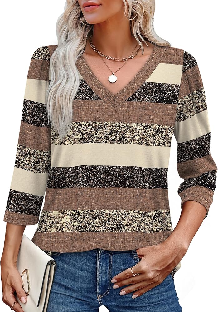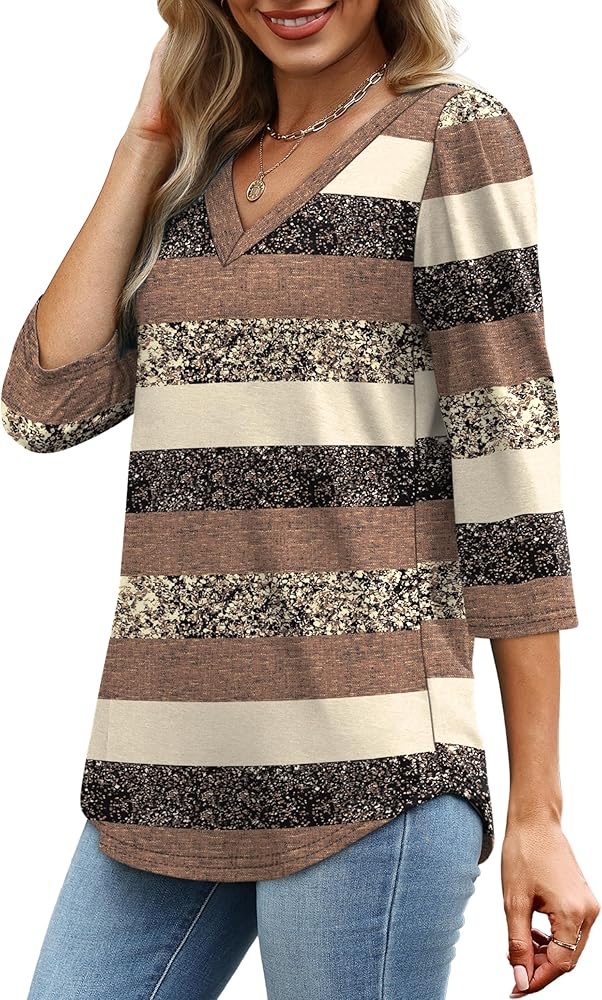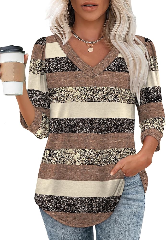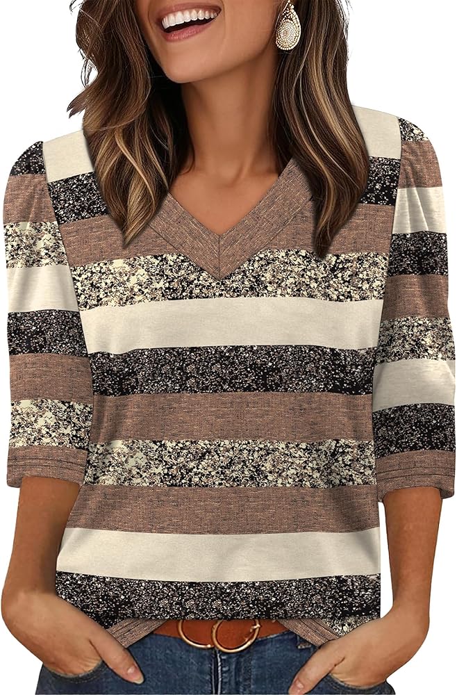 𝐅𝐞𝐚𝐭𝐮𝐫𝐞𝐬: Womens 3/4 length sleeve tops/ dressy v neck blouses/ fashion puff sleeve t-shirts/ loose curved hem tunic. Loose fit, simple casual style chic and never out of date. Solid color & cute floral print for your choice