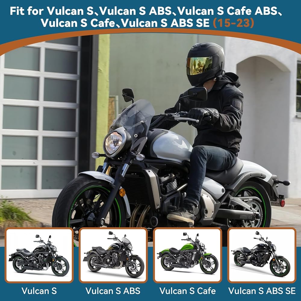 • 【Windshield Fitment】xxInch Black Windscreen fit for Kawasaki Vulcan S models, including Vulcan S, Vulcan S ABS, Vulcan S Cafe ABS, Vulcan S Cafe, and Vulcan S ABS SE from 2015 to 2024, ensuring your motorcycle can perfect fit