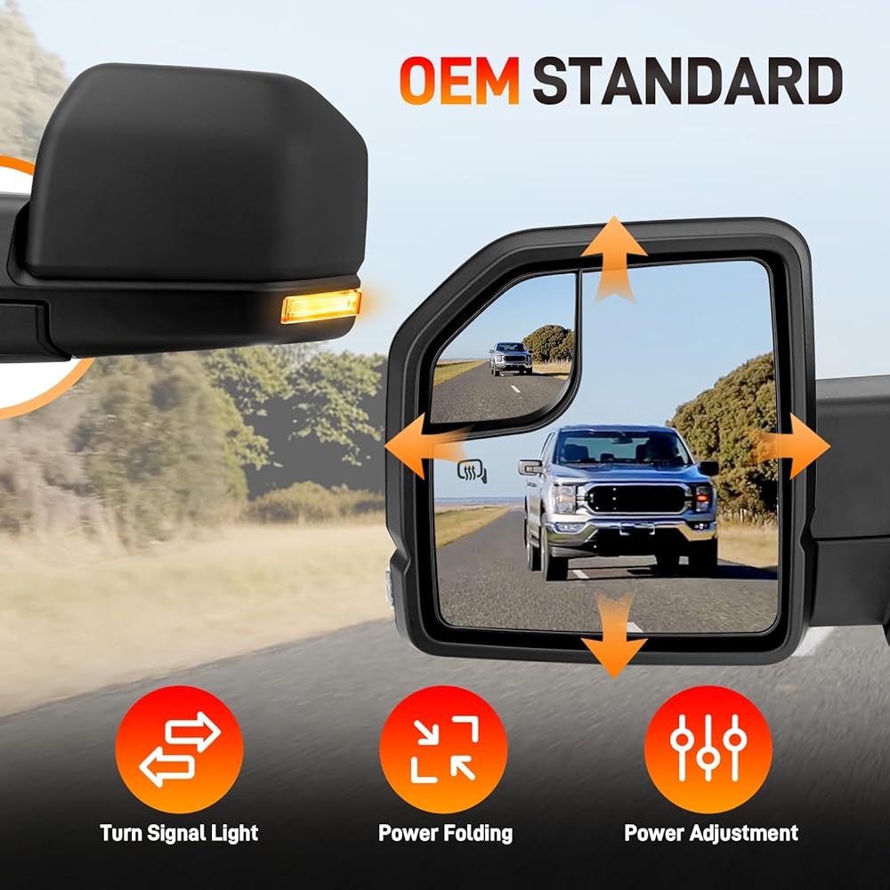 Power & Heated – Power-adjustable mirror with built-in heater for clear visibility in cold or wet weather