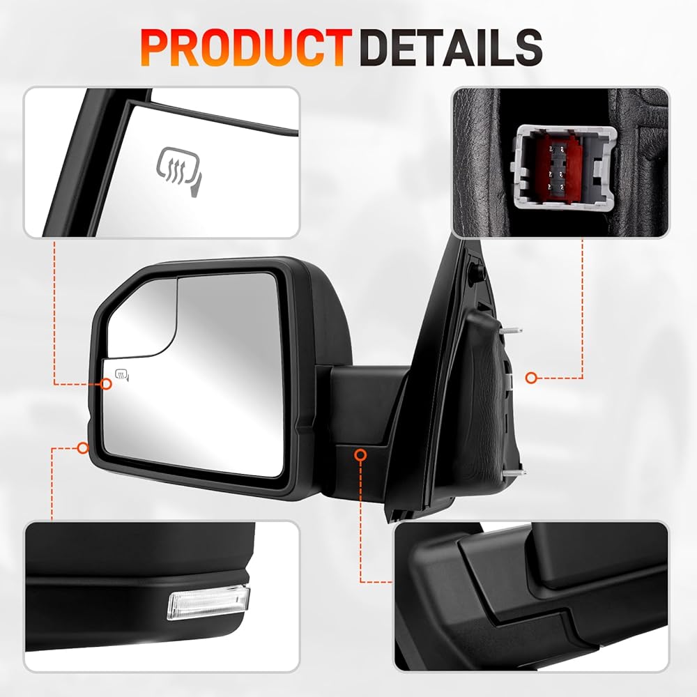 Left Driver Side 6 Pins Rear View Door Mirror Assembly Compatible with 2015-2020 Ford F-150 with Power Heated Turn Signal Light Blind Spot Glass Replace# FL3Z-17683-CC, FL3Z-17683-CB, FL3Z-17683-CA
