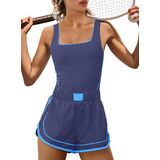 Athletic Rompers for Women: This one piece shorts romper adopts classic sports design and soft, breathable sports fabric. Four-way stretch fabric allows you to wear romper shorts to complete each move perfectly of tennis, yoga and other exercise activities
