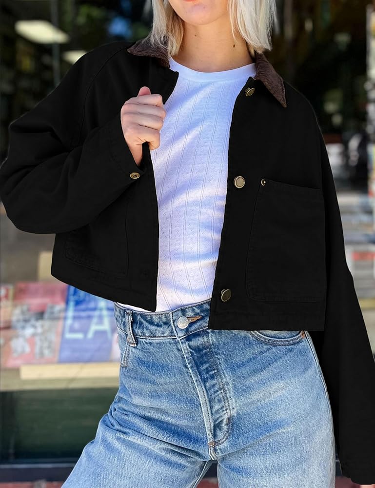 Match: Womens button down cropped jacket is perfect to layer over tees, tanks, hoodies, or sweaters; style with denim, joggers, or floral dresses; finish with ankle boots, sneakers, or heels
