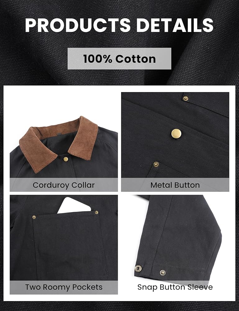 Features: Corduroy collar adds vintage flair, button front closure for easy on and off, two roomy pockets to stow essentials
