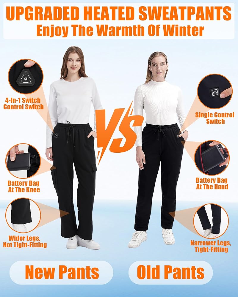 🔥【Baggy Heated Cargo Sweatpants for Women】Stay warm without sacrificing comfort. These women's heated sweatpants feature a relaxed, straight-leg fit with 3D tailoring for unrestricted movement. Lightweight and breathable, they're perfect for lounging or staying active outdoors. Side cargo pockets at the knees offer secure, reinforced storage for your essentials—like phones or keys.