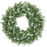 [Easy to care] This boxwood Wreath is made of lush evergreen boxwood leaves that will never wither and without the hassle of watering or maintenance. When it is covered in dust, it can be directly rinsed with clean water.