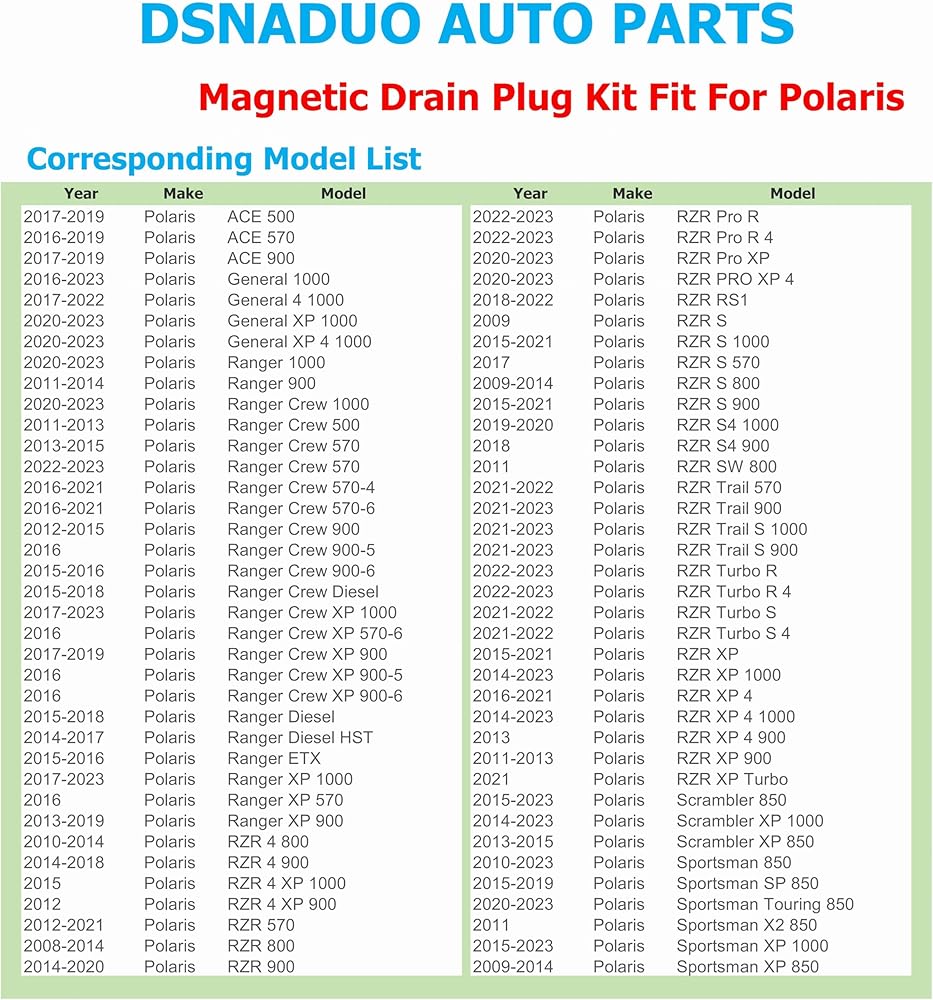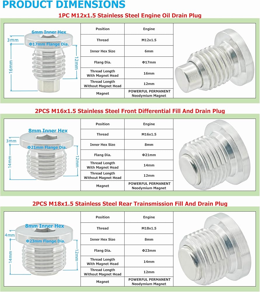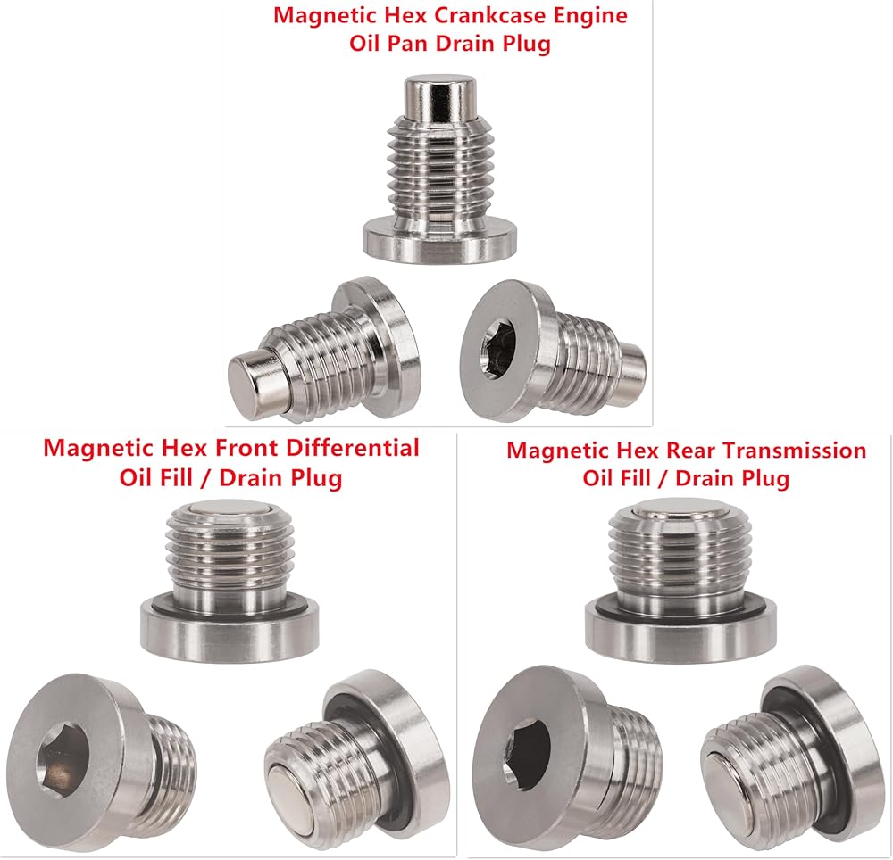 Including 1 PC Magnetic Stainless Steel Engine Oil Drain Plug with Gasket; 2 PCS Magnetic Stainless Steel Front Case Drain / Fill Plugs With Rubber Gaskets; 2 PCS Magnetic Stainless Steel Rear Transmission Drain / Fill Plugs With Rubber Gaskets, 2 PCS Difference Tool