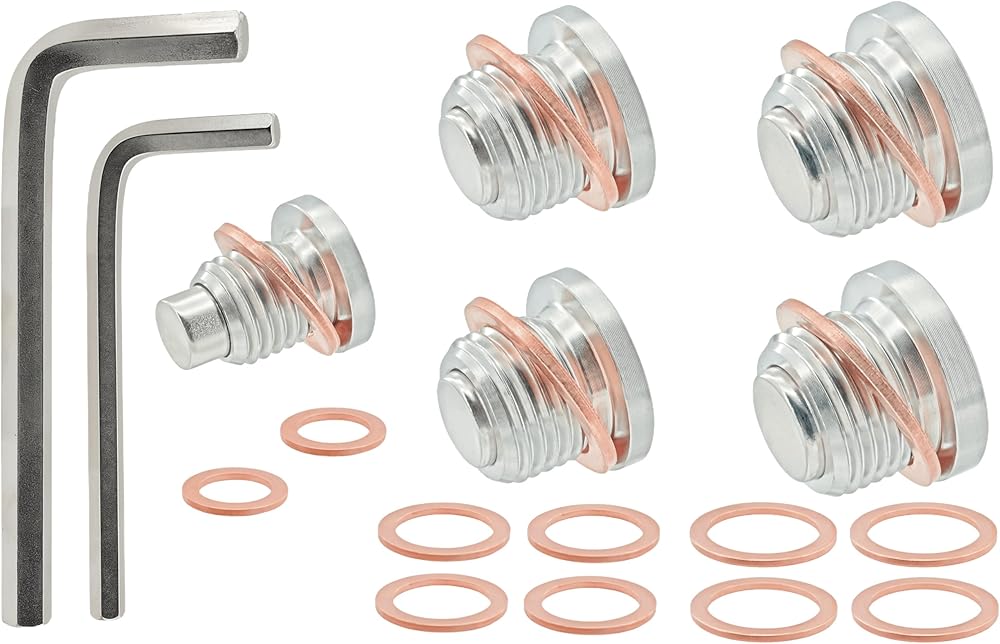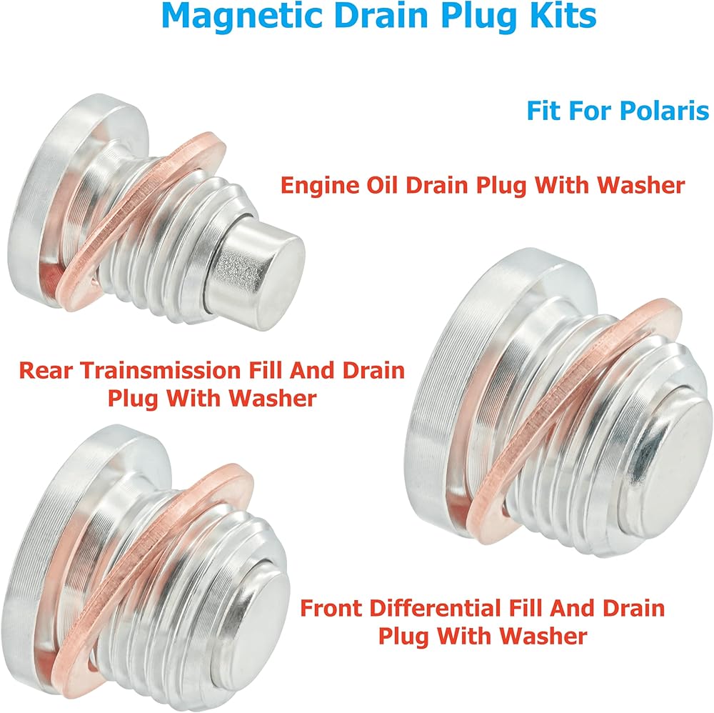 5PCS Stainless Steel Magnetic Engine Front Differential Rear Transmission Oil Drain Plug Kit, fits Polaris General RZR Ranger Sportsman Replace 7052306 3234756 3234755 2203738 2203739 ATV UTV