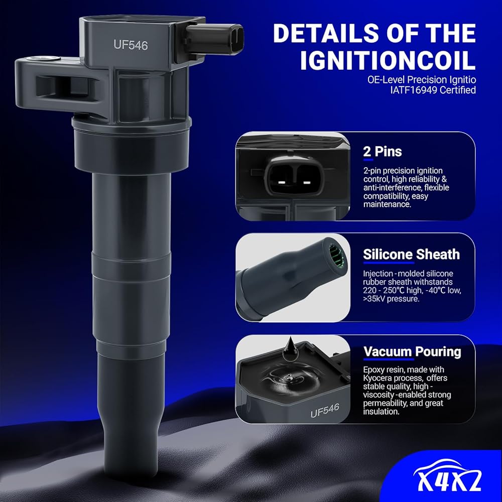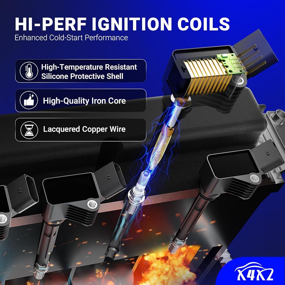 ✔Premium Performance: Ignition coils and spark plugs are built to achieve or exceed OE specifications, Highly conductive copper wire and high dielectric performance epoxy ensure excellent connectivity and long service life, to provide superior cold-start performance and a smoother running engine.