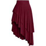 - Features - Elastic high waist,ruffle hem,flowing style,split thigh,wide waistband,asymmetrical long skirt