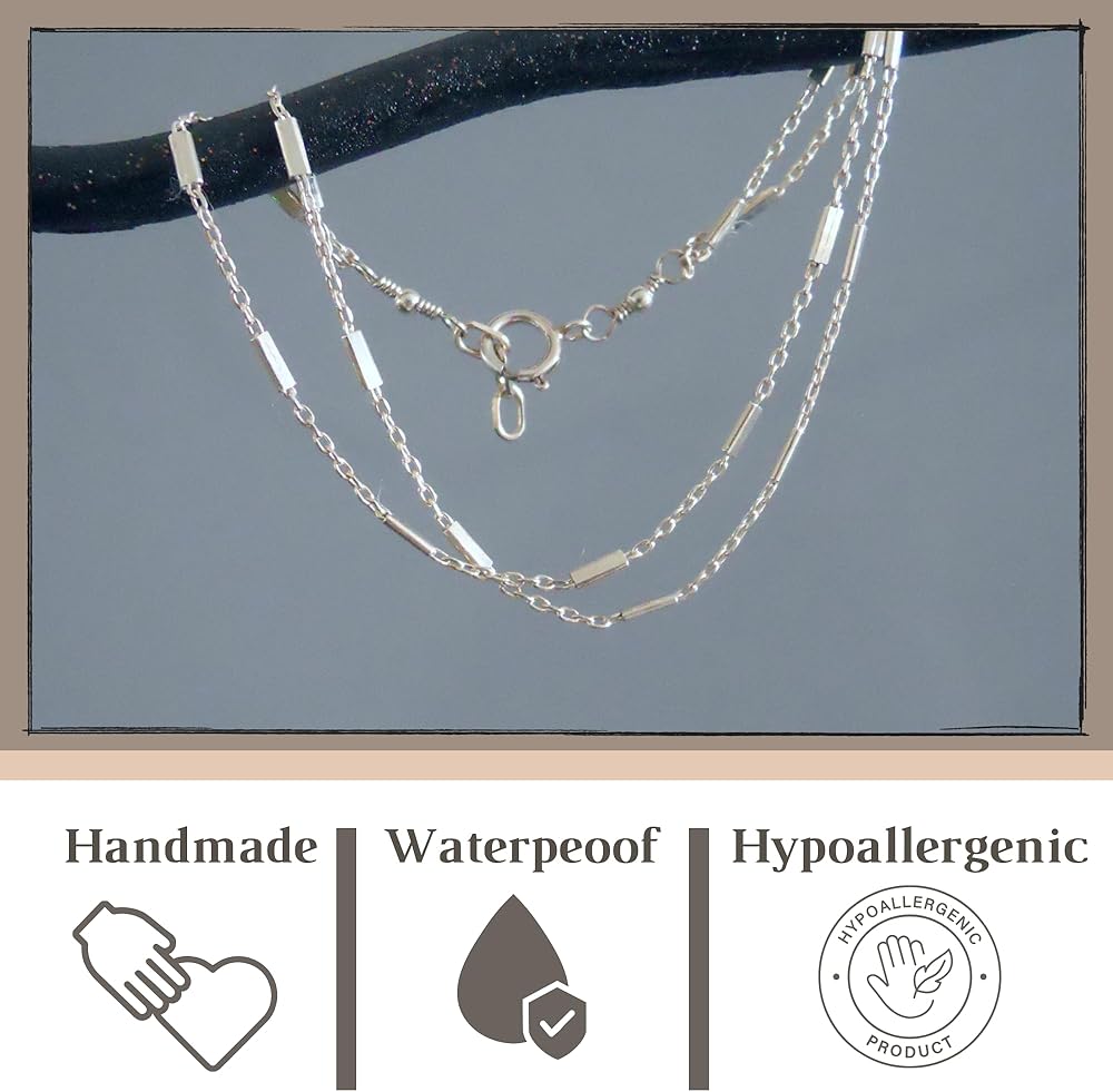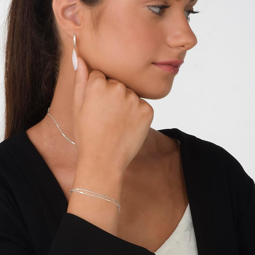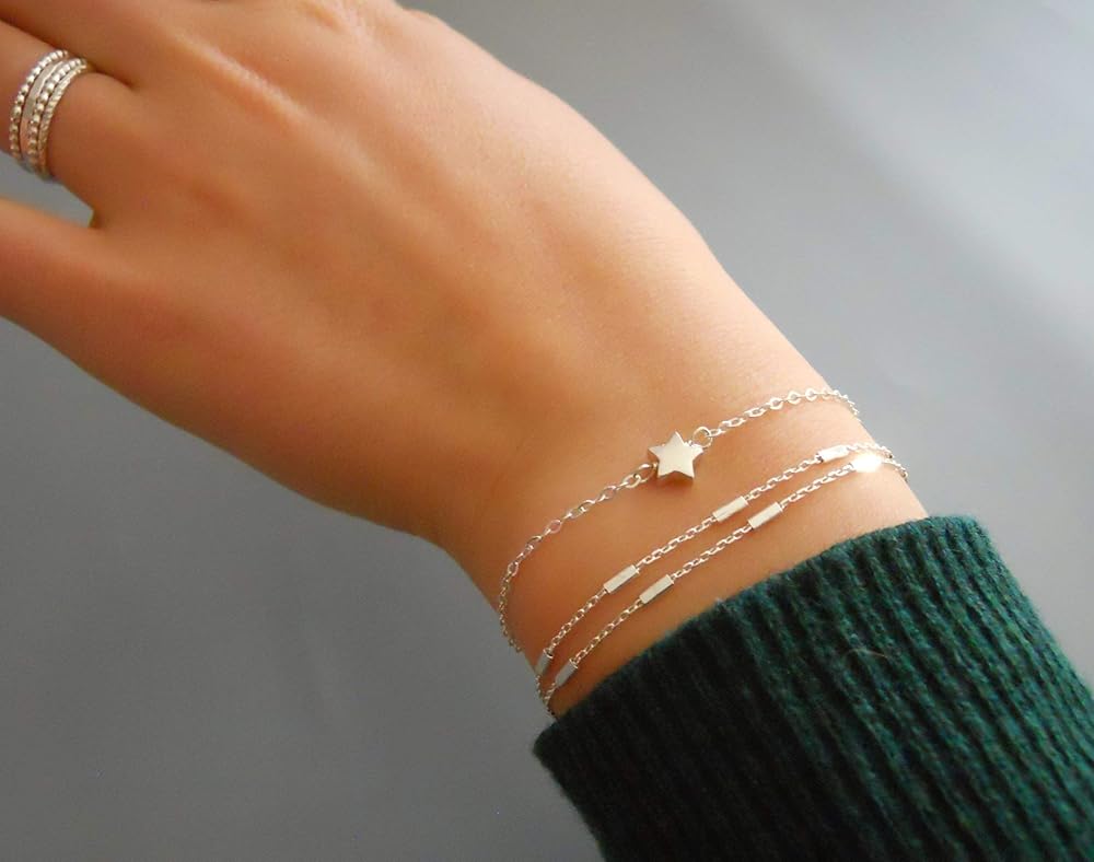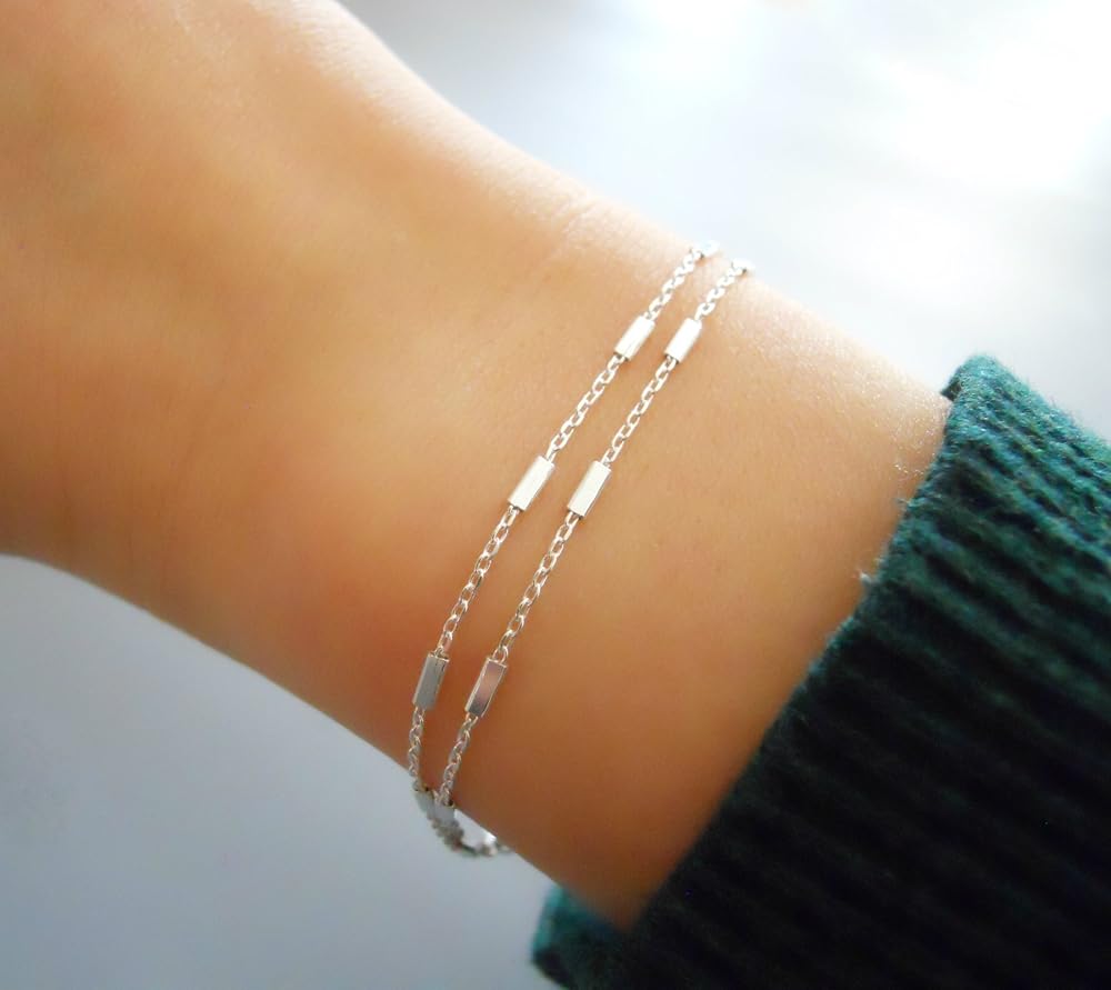 Dainty Stranded Sterling Silver Bracelet for Women with a Satellite Bar Chains